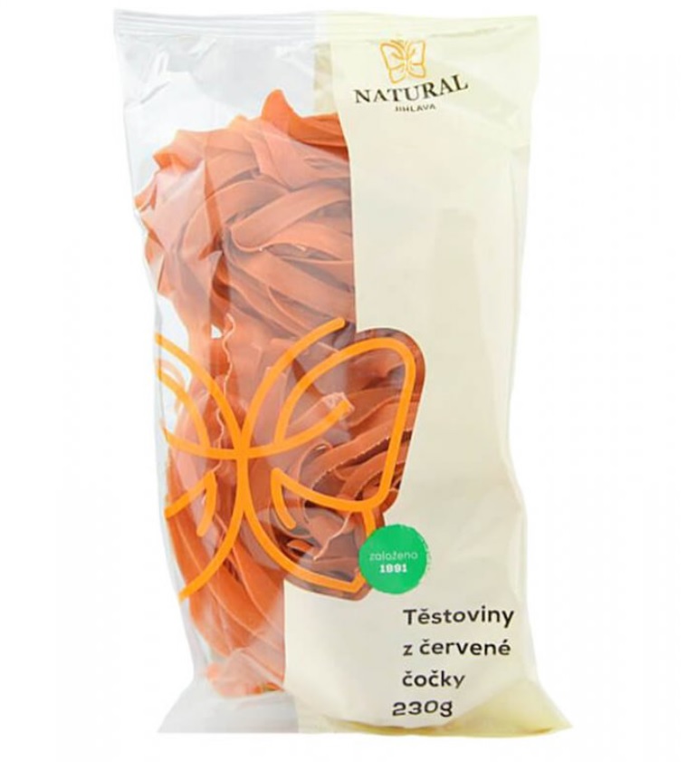 Vyzkoušejte výborné bezlepkové těstoviny z červené čočky. Červená čočka je výborným zdrojem vlákniny i bílkovin a díky tomu jsou tyto tětoviny vhodné pro celiaky, popř. i vegany. Těstoviny z červené čočky jsou velmi rychle uvařené a můžete je použít pro přípravu salátu, přílohy nebo jako hlavní chod. Těstoviny jsou lehce stravitelné.